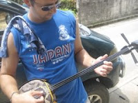 Matt trying his hand at the Shamisen again, the traditional 3 string guitar originally from Okinawa. Even with just the three strings he was struggling.